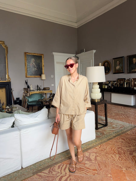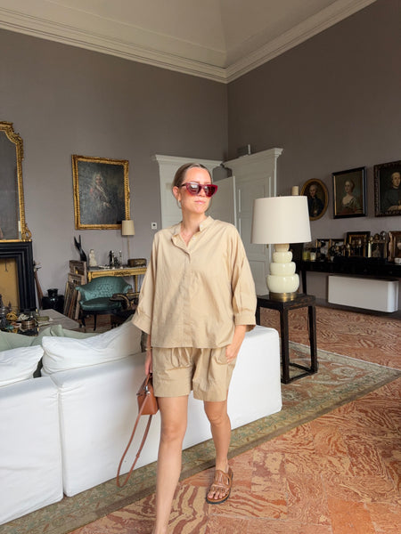 The Lario shorts are cut from sustainable BCI cotton in a versatile sand tone, offering a balance of comfort and understated style. With an easy elasticated waist and a relaxed fit, they’re designed for all-day wear. Style them with the Lario top for a coordinated look that feels polished yet effortless, or mix them with airy shirts and tanks for an off-duty vibe.